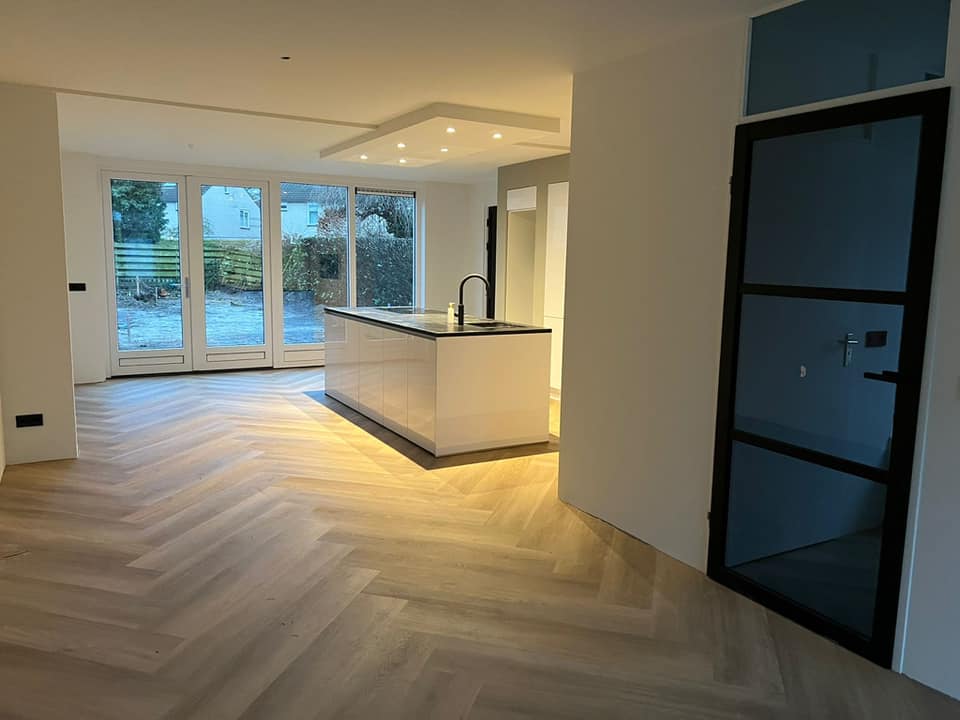 Hoge plinten, plakplinten, kitwerk en overgangen: wij werken alles strak af zodat het echt “af” voelt.